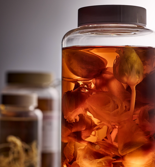 Over 600 hours of fermentation break down ingredients into smaller molecules, with microorganisms precisely decomposing them to maximize skin absorption. Through a two-step fermentation process, impurities and odors are thoroughly eliminated, leaving behind highly purified active substances. These beneficial components are deeply absorbed into the skin, promoting a healthy and hydrated complexion. Scientifically, fermented ingredients possess a cell structure similar to that of human skin tissue, allowing for stable absorption. They also safely neutralize the toxicity of plant ingredients and are rich in essential vitamins, minerals, and other nutrients beneficial to the skin. The organic acids and high-molecular proteins (enzymes) produced during fermentation help create a healthy skin environment, while low-molecular-weight amino acids, like beta-glucan, aid in moisture retention and regeneration, fortifying and revitalizing the skin.